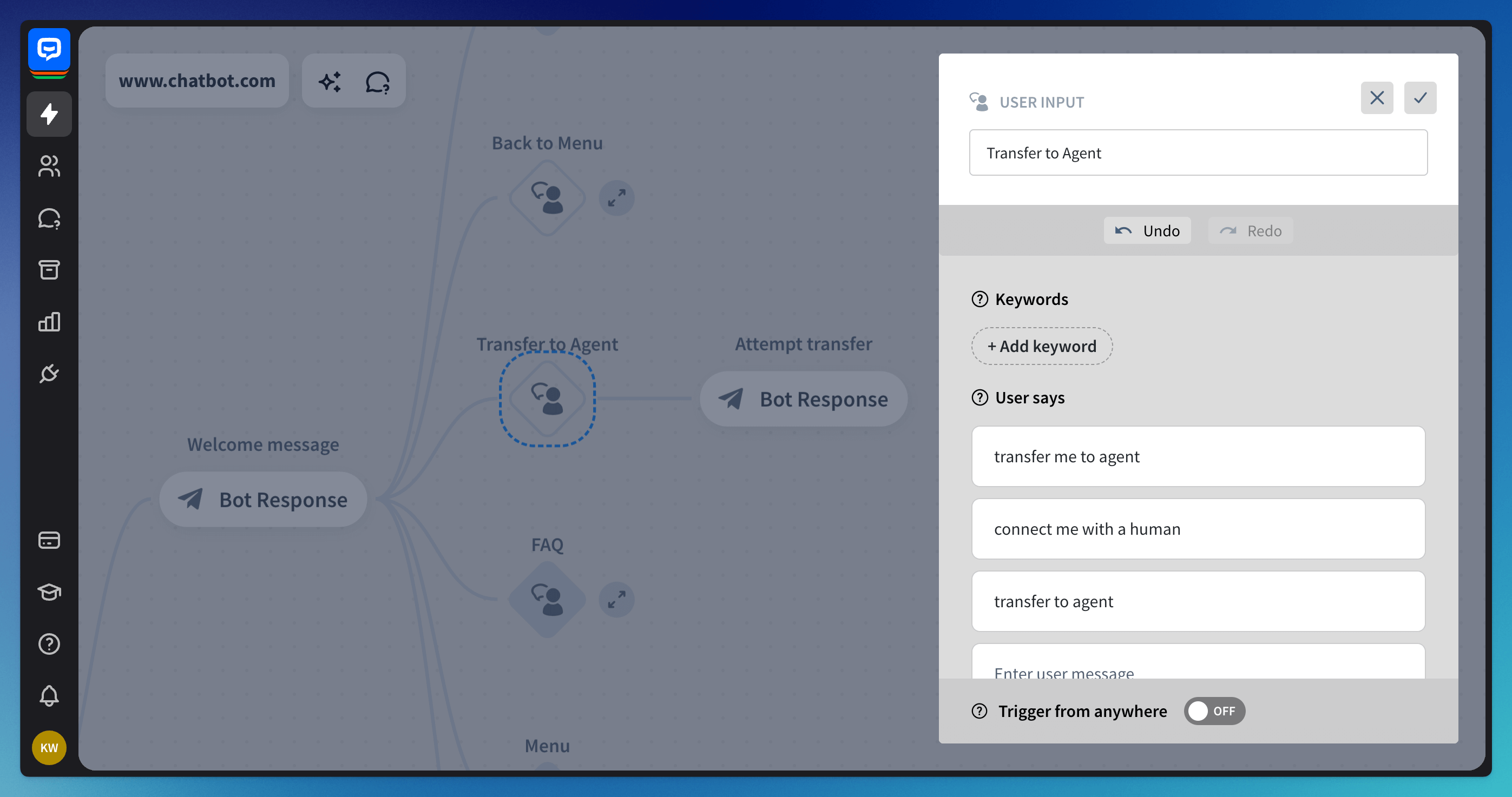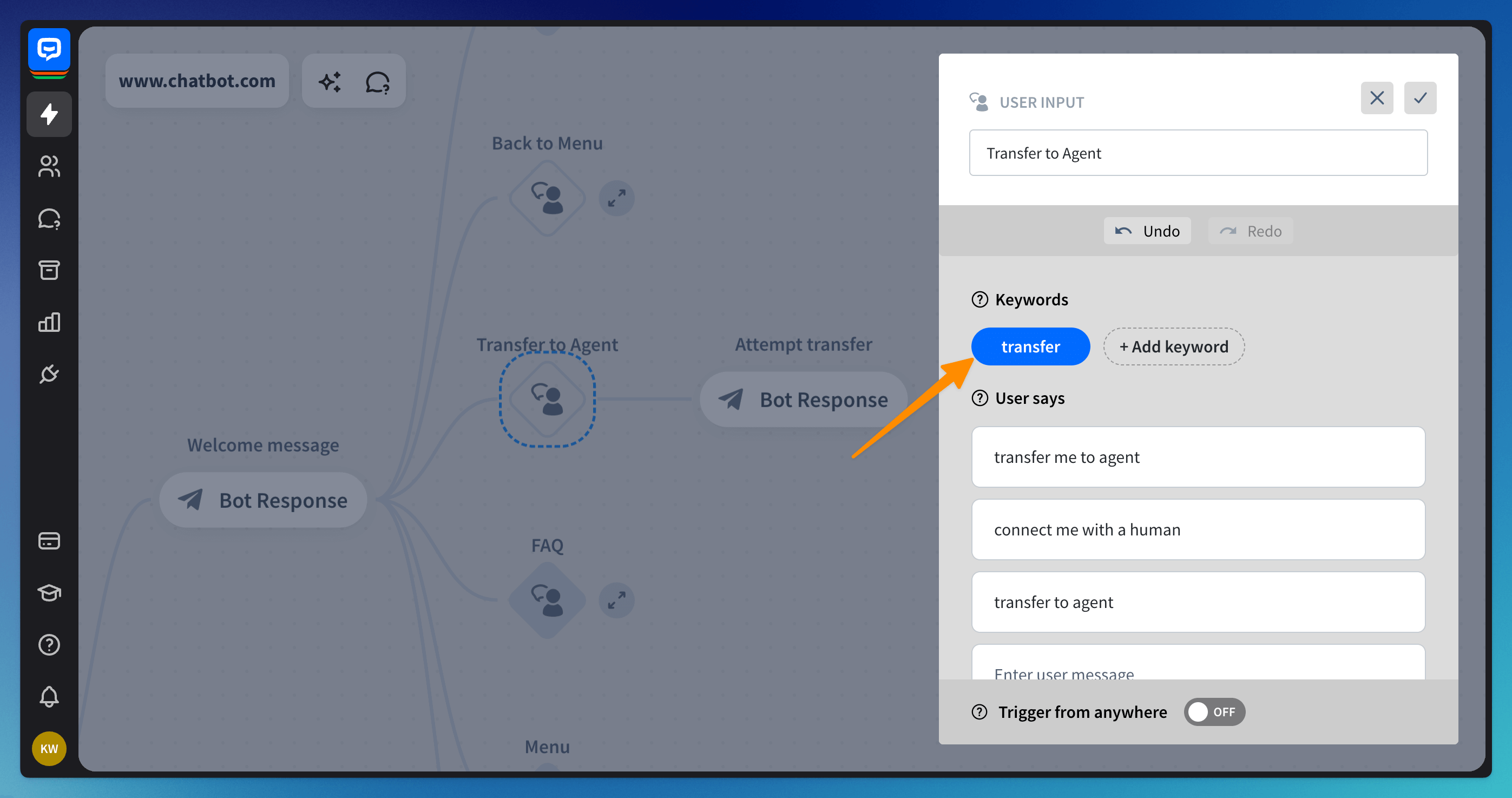 Your user input will be triggered whenever a user types this keyword in the ongoing chat.