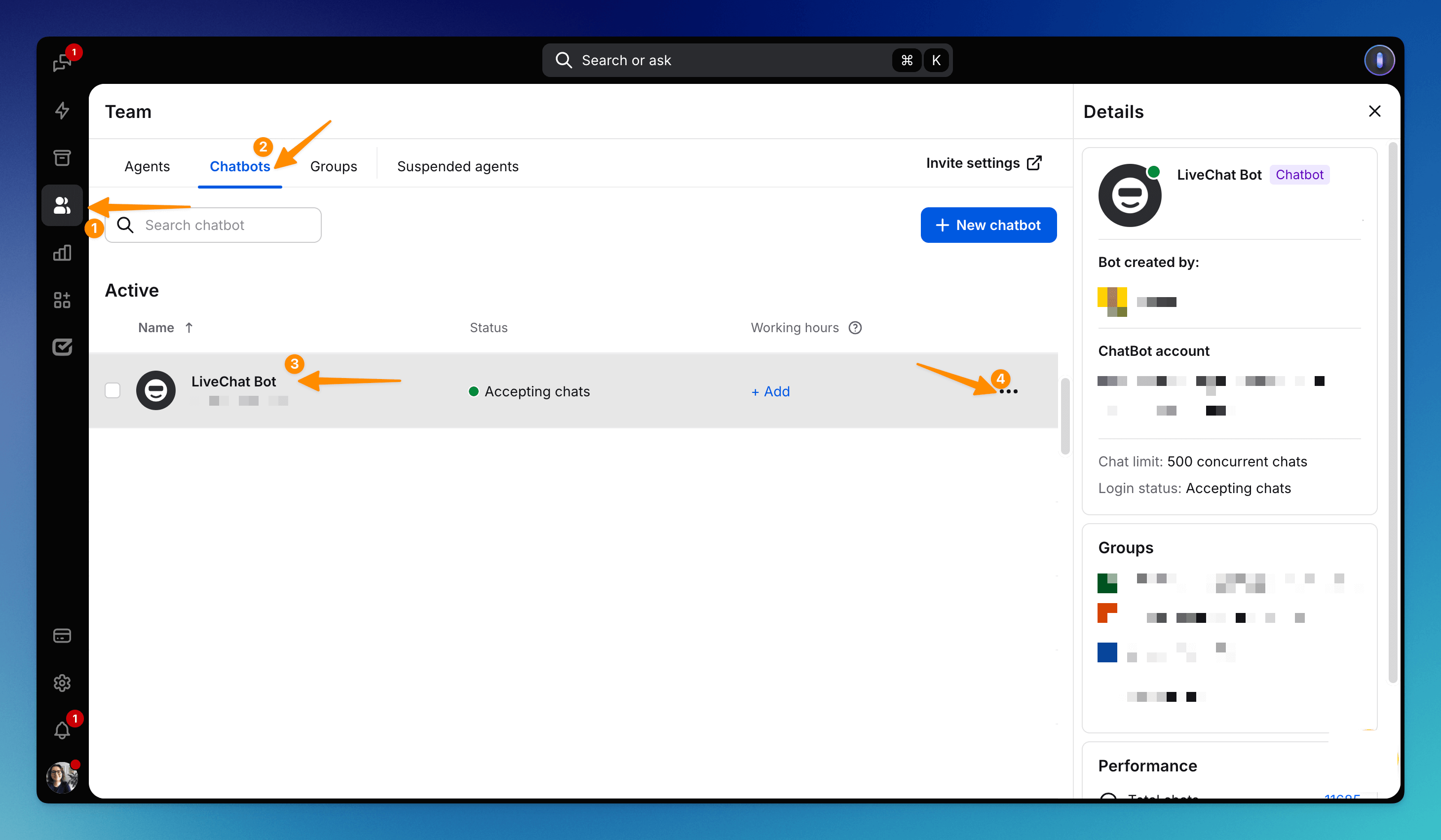 Remember that your bot will be added to LiveChat as one of the Chatbots available in the app. The bot will be triggered based on the priority that you assign to it. You can do this from the ChatBot and the LiveChat side.