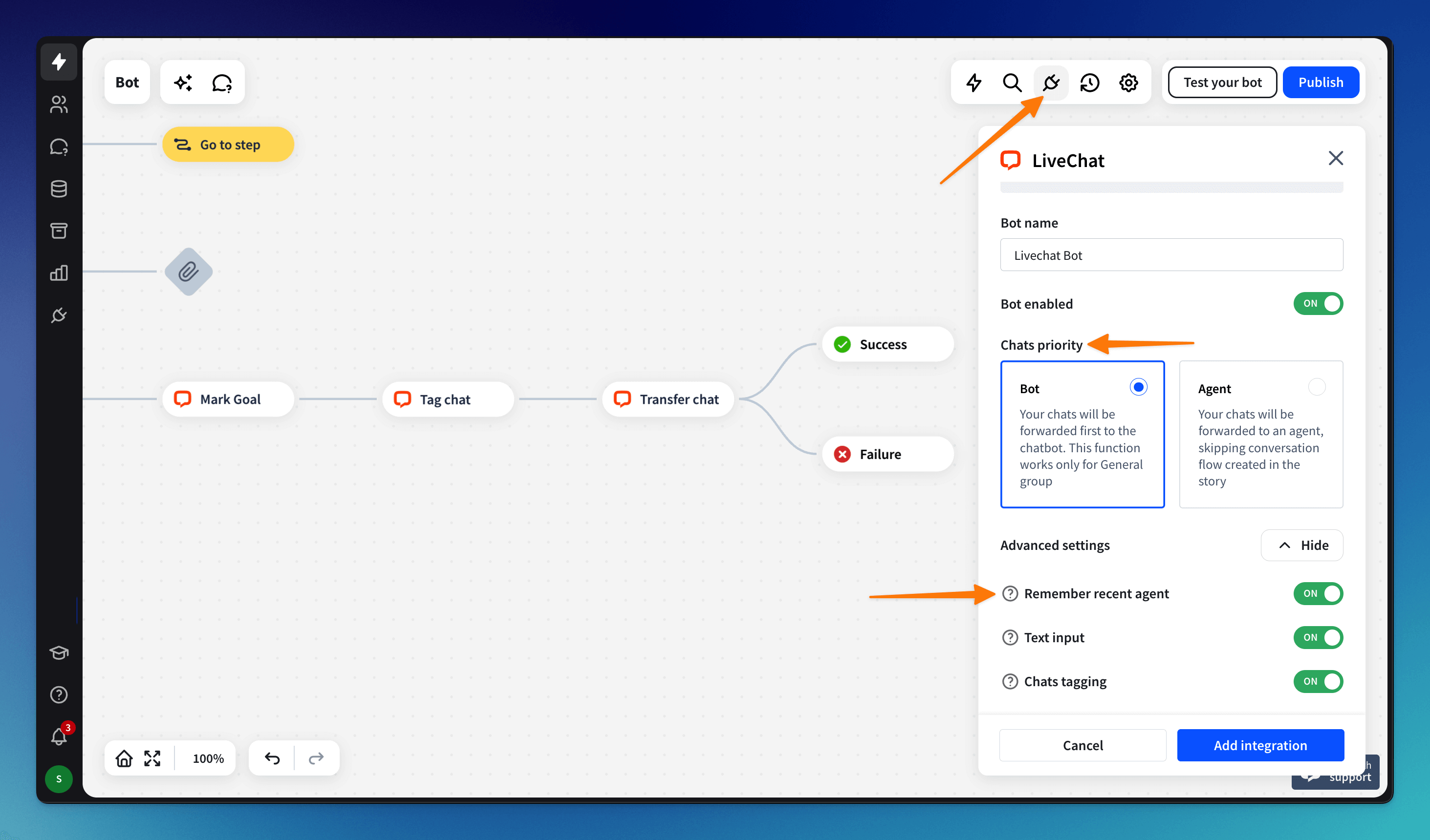 Integrating LiveChat and ChatBot takes a couple of clicks. After you connect the tools, you need to remember a couple of things.