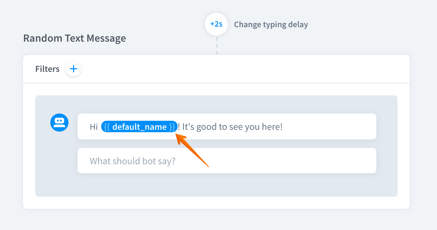 bot responses, addtextand inside your response type double curly brackets to call the attributes{{ ... }}. Keep Default and user attributes selected.