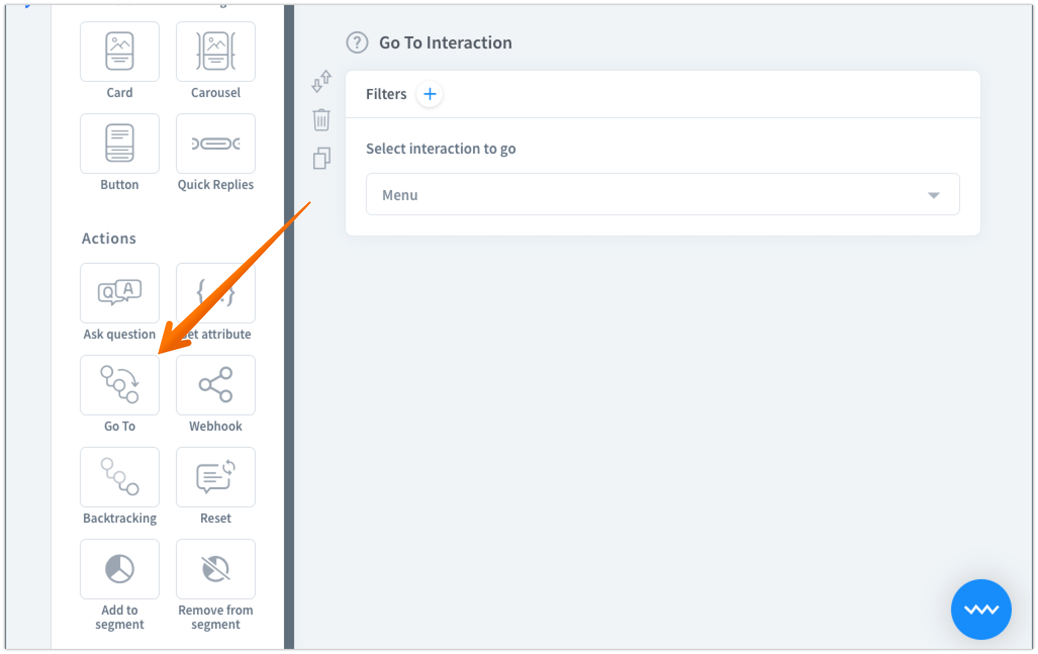 Go tois also a button type and can be used as an action with cards, buttons and quick replies. -