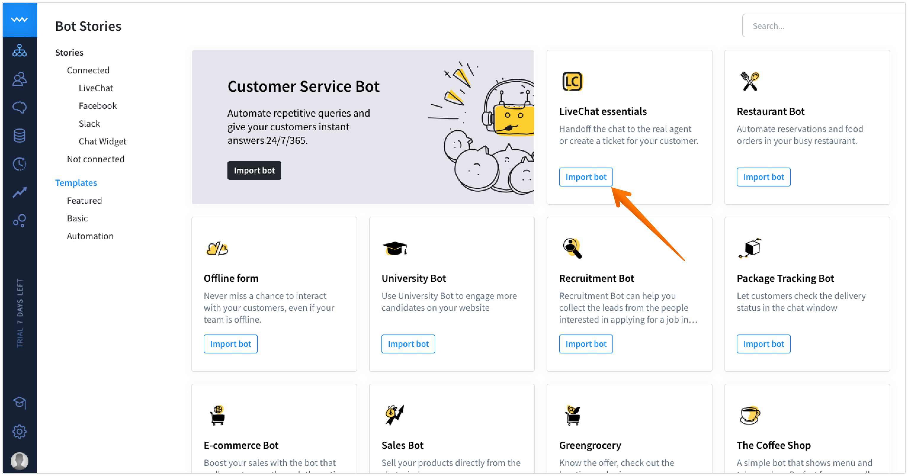 Before you start adding and testing the transcript action, remember to integrate your bot with LiveChat.
