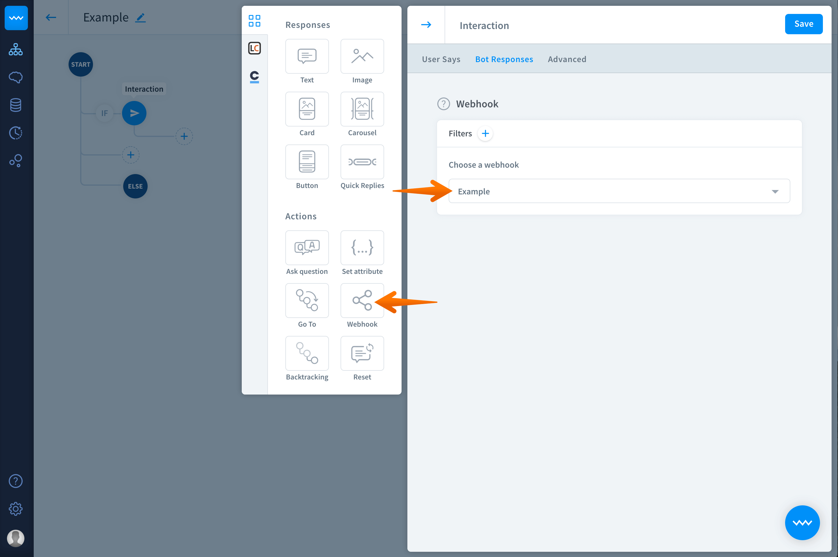 Go to the interaction you want to connect your webhook with and select the bot responses section.