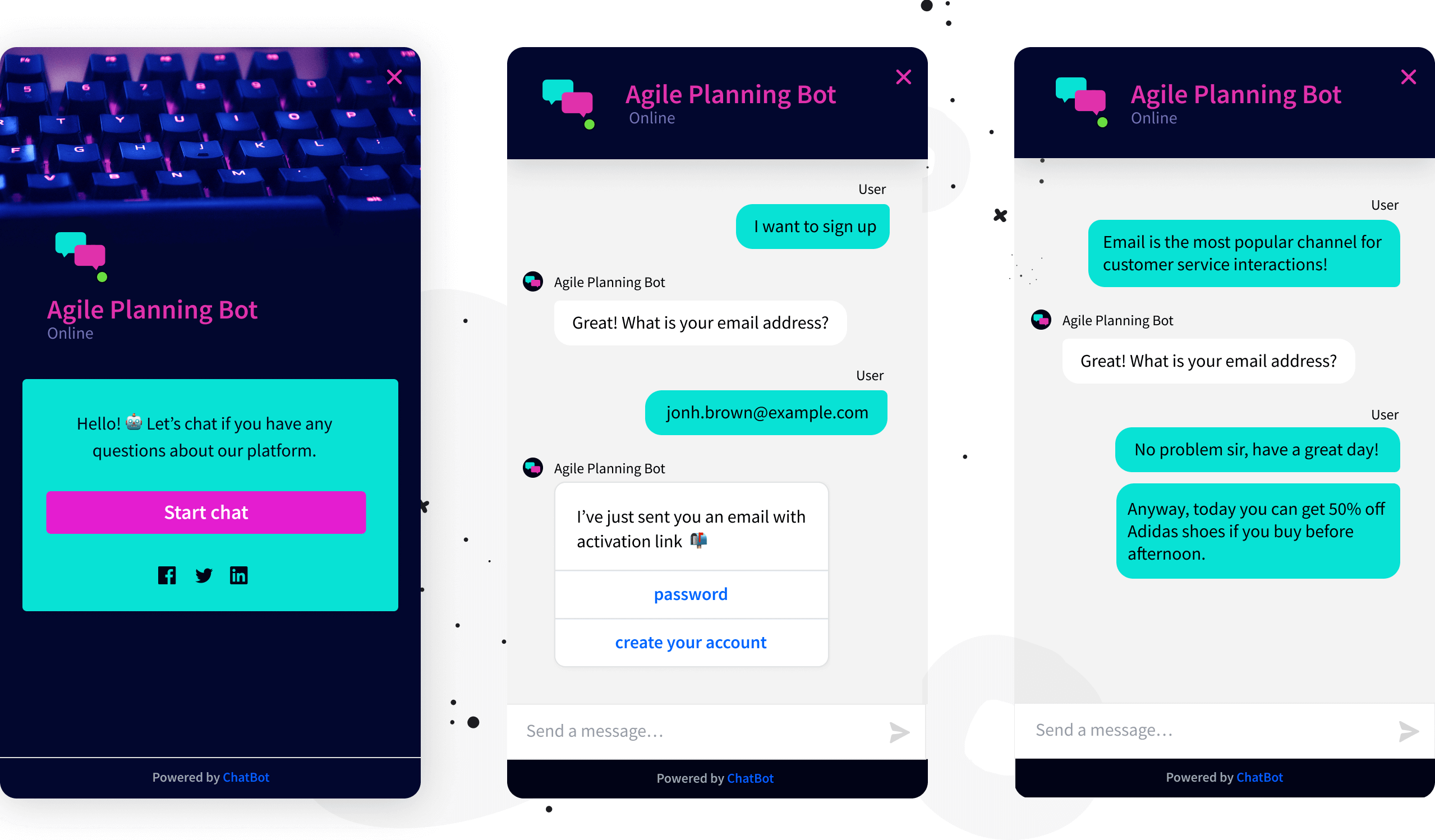 Integrate ChatBot with tools you use and stay in touch with customers after the chat ends.